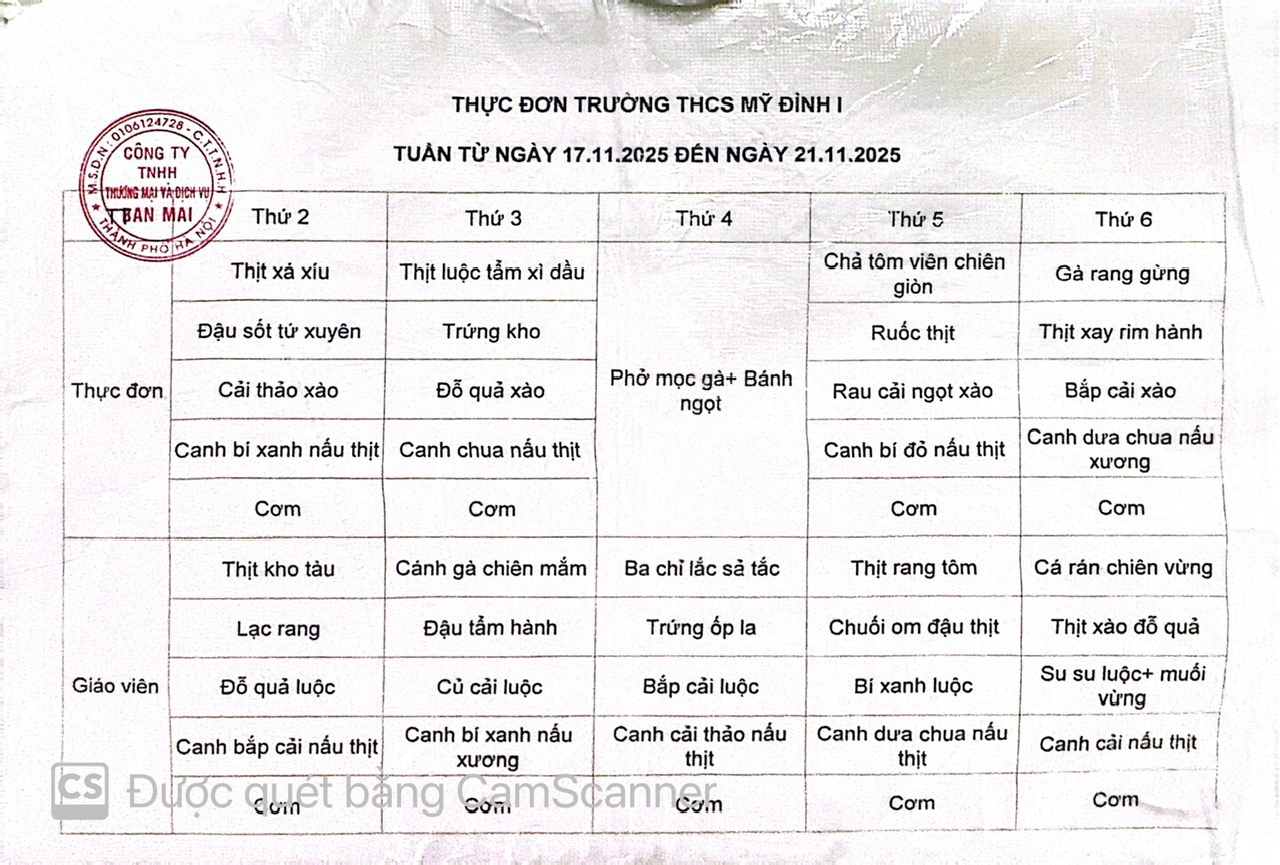 Thực đơn bán trú từ ngày 17/11/2025 đến ngày 21/11/2025